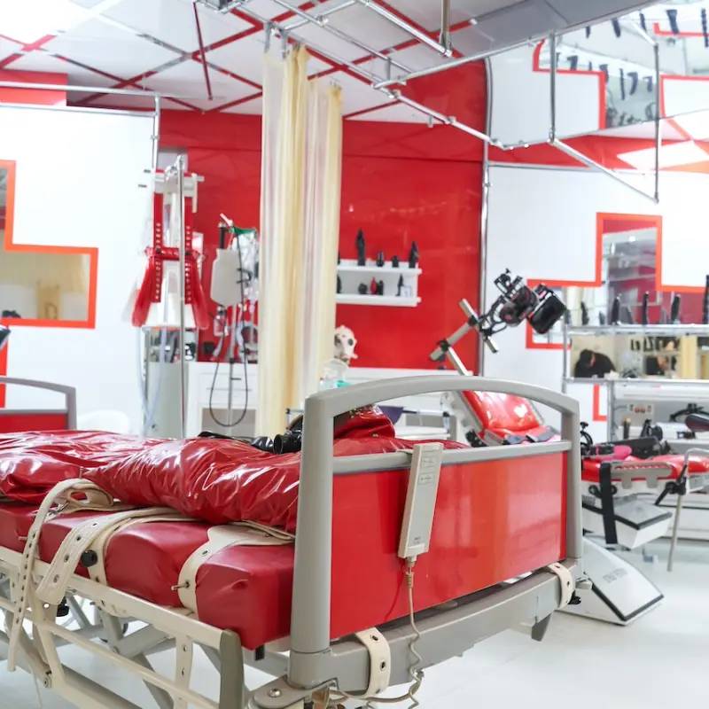 In the perfectly equipped rubber clinic, our scientists, doctors, and nurses choose the right treatment and experiments for you. Carefully, she examines and treats you with electrostimulation, injections, our air-control machine, the Venus milking machine, and other exquisitely perverted methods. As the main actor in the "absolute action thriller," you can experience the unconditional self-sacrifice.